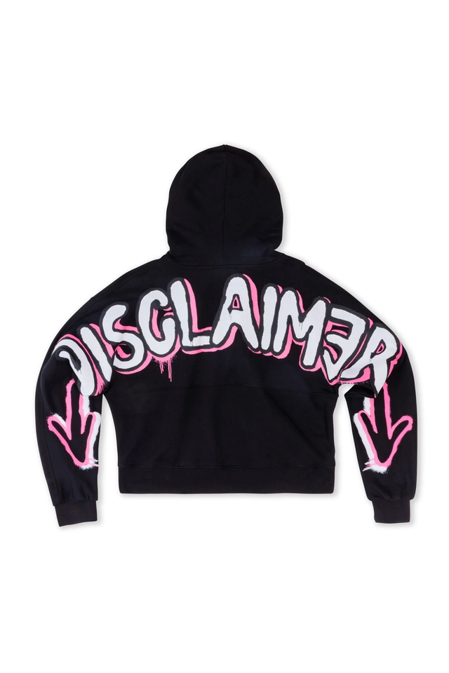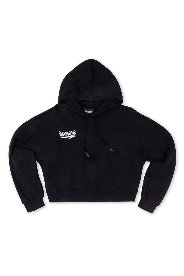 Disclaimer Felpa cappuccio crop con stampa logo sul retro