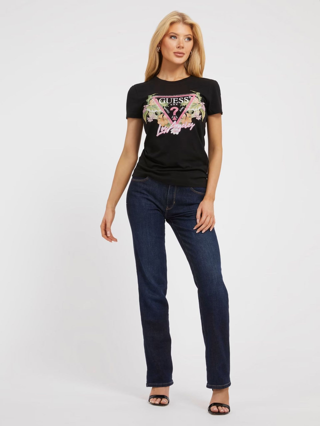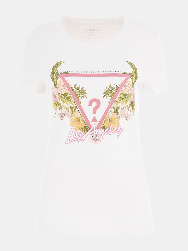 5465165156 - GUESS T-shirt logo triangolo slim con strass
