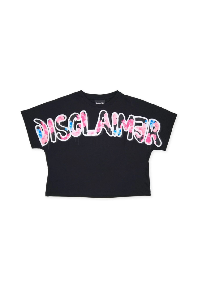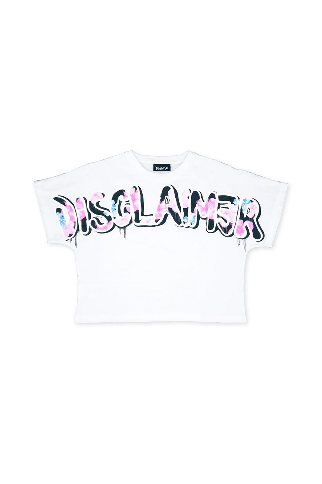 Disclaimer T-shirt crop con stampa logo sul davanti