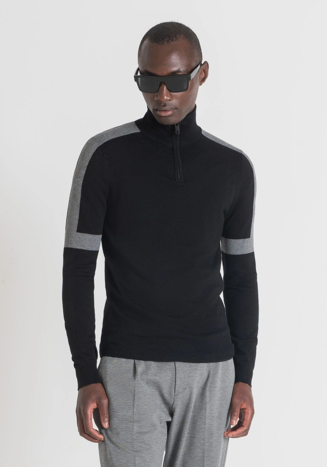 Ant ony Morato MAGLIA SLIM FIT RASATA CON FASCE A CONTRASTO E ZIP 1-4