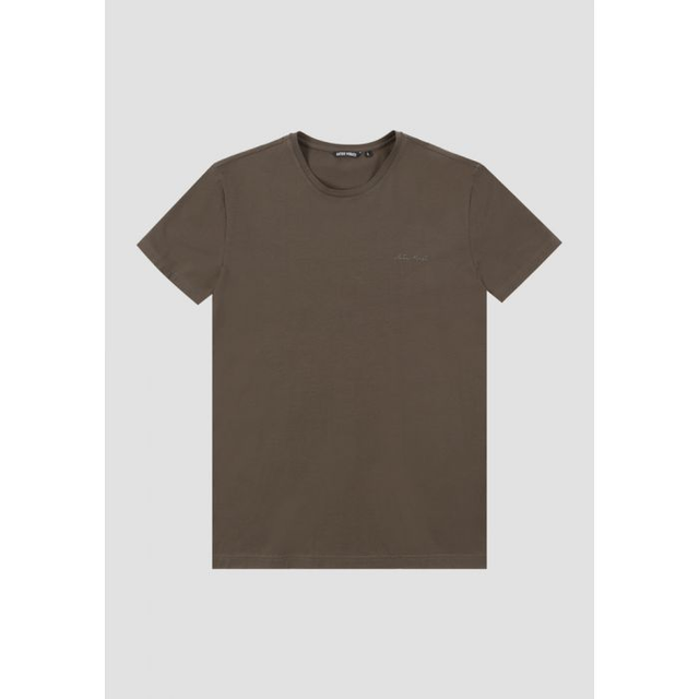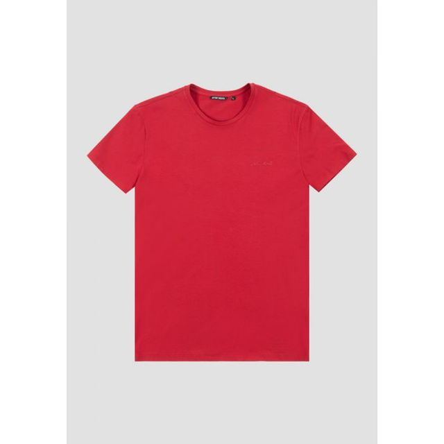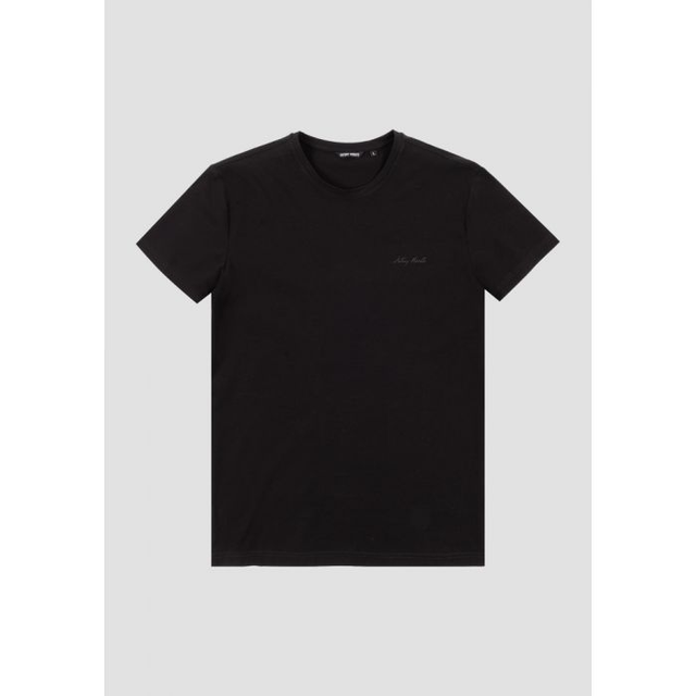 T-SHIRT SUPER SLIM FIT IN COTONE MERCERIZZATO ELASTICO CON STAMPA LOGOGOMMATA AD