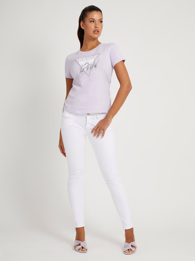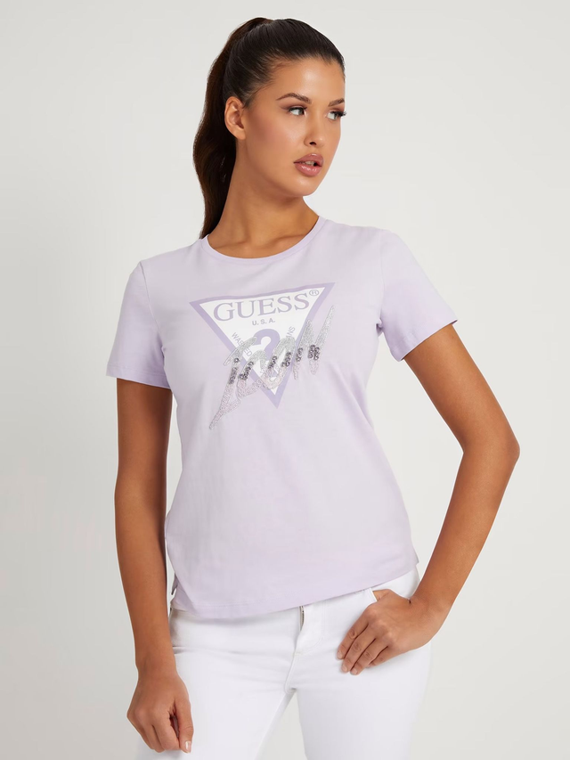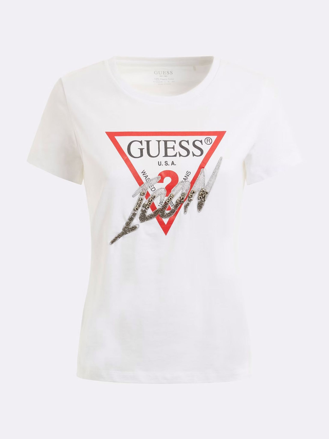 GUESS T shirt mezza manica girocollo con stampa classica piu applicazioni